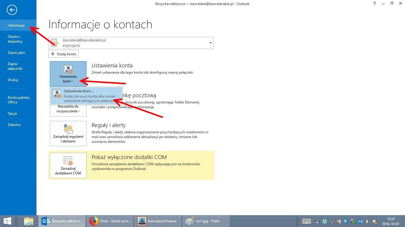 2. Przejść do ustawień kont
