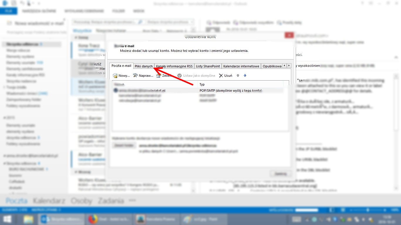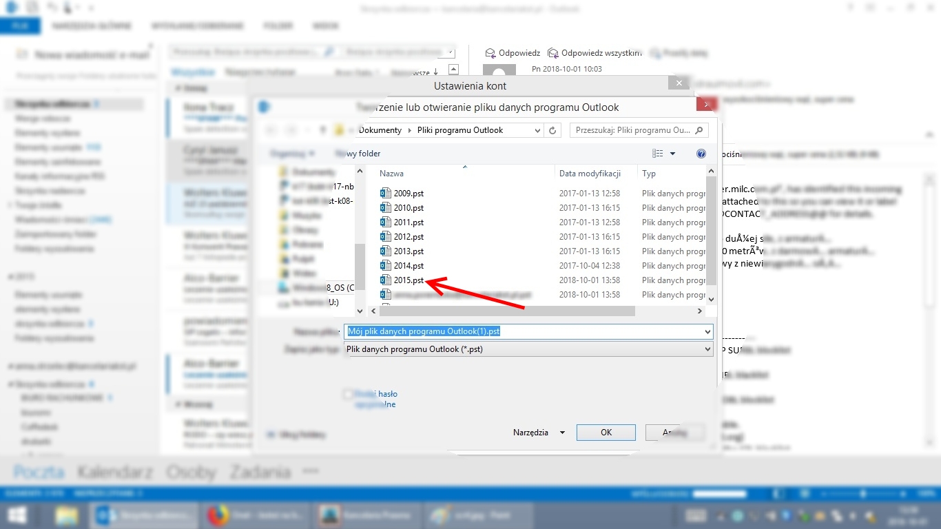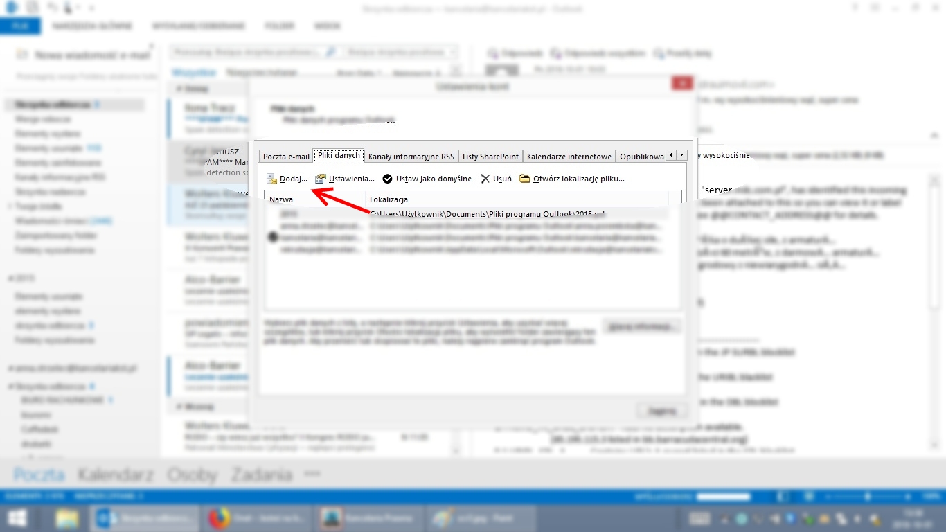 Aby dodać archiwalne poliki w Outlooku należy: